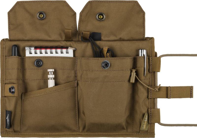 Helikon Map Case je nielen puzdro na mapu, ale tiež má aj organizér na ďalšie vaše veci tak, aby boli vždy po ruke. Mapa sa vkladá do vrecka na zips a je tak chránená proti poškodeniu. Na vonkajšej strane sú dve vrecká zapínateľné na cvoky a dve menšie vrecká. Ďalej sú k dispozícii dve úzke vrecká na písacie potreby a pružné očká. Celé puzdro je uzatvárateľné na cvok.