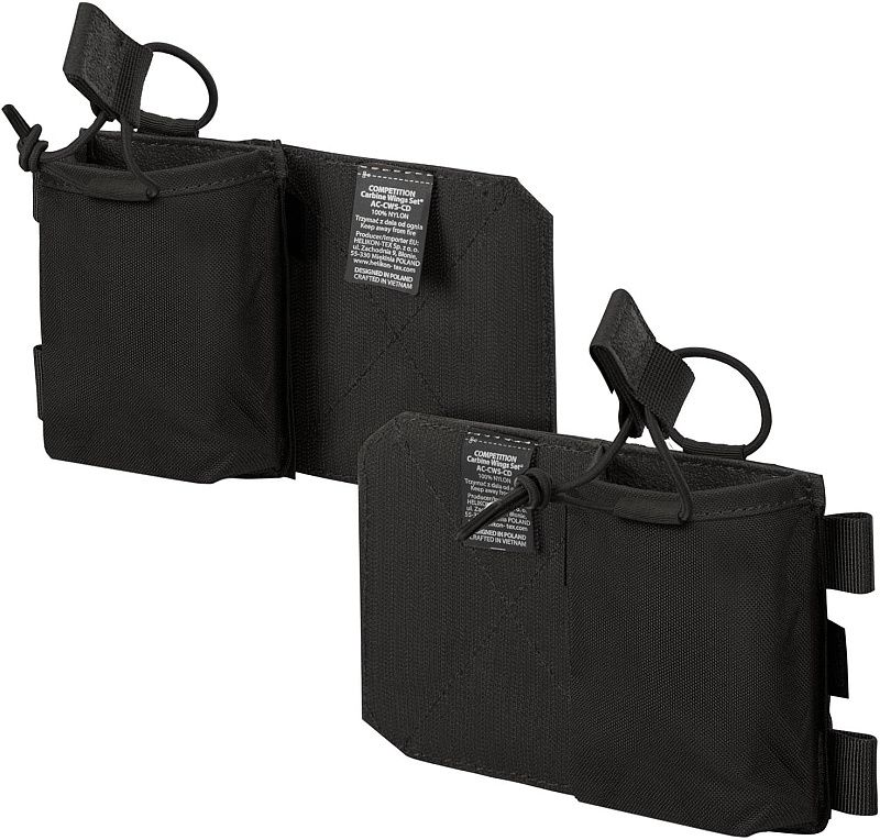 Helikon Competition Carbine Wings Set bol navrhnutý tak, aby prispôsobil COMPETITION MultiGun Rig, značky Helikon, na prepravu ďalšej munície. Krídla sa pripevňujú suchým zipsom na zadnú stranu vesty.. Tento insert bol navrhnutý tak, aby sa doň zmestila väčšina puškových zásobníkov (pasujú aj štandardné zásobníky AR / AK). Antislip interiér zabraňuje vypadnutiu zásobníka zo sumky.