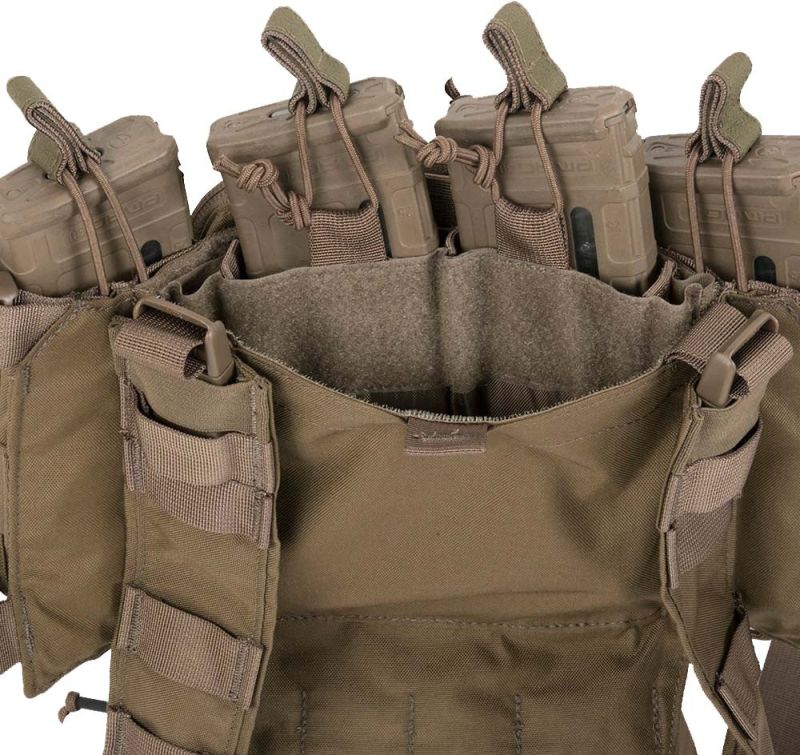 Vesta obsahuje "rôzne vrecká a priehradky", vrátane hlavného nákladového vrecka s "vnútorným organizérom" a "sieťovaným vreckom na zips", ako aj "špeciálne púzdra na zásobníky AR/AK".