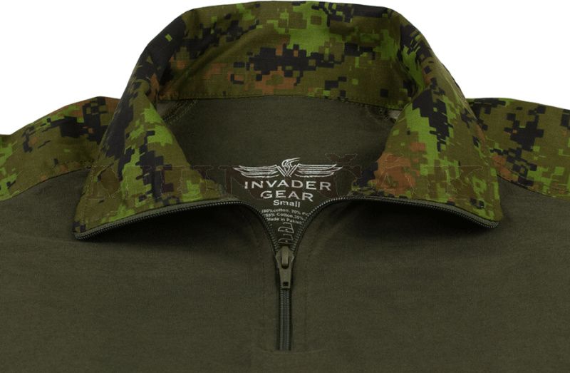 Taktická košeľa s dlhým rukávom od švajčiarsko-rakúskej firmy Invader Gear. Je z kvalitného materiálu, ktorý je priedušný a pohodlný na nosenie a súčasne tiež odolný. Rukávy a golier sú s Ripstop úpravou. Zapínanie trička je na kvalitný YKK zips. Na ramenách sú priestranné vrecká na suchý zips. Konce rukávov je možné stiahnuť pomocou suchého zipsu.