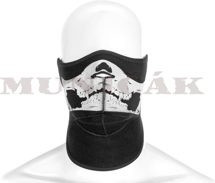 Kvalitná neoprénová maska. Vynikajúco chráni pred chladom, prudkým vetrom, malými časticami (prach, ľad, sneh,..). Maska má zapánanie na suchý zips a v prednej časti potlač s motívom ľudskej lebky.
