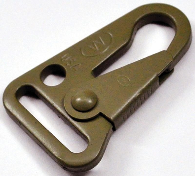 ITW NEXUS Clash Hook je robustná oceľová karabína určená pre taktické popruhy zbraní so šírkou 1 palec (2,54 cm). Vyznačuje sa nízkym profilom a zaoblenými hranami, ktoré zabraňujú nechcenému zadrhávaniu o výstroj. Vďaka pevnej oceľovej konštrukcii je vhodná na všetky druhy zbraní – od pušiek a sniperiek až po guľomety a SMG. Karabína sa na popruh inštaluje prevlečením, preto je nutné použiť popruhy bez pevne zašitých koncoviek.