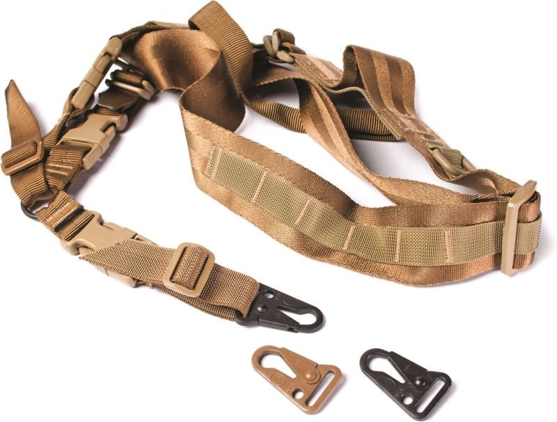 Je vybavená pružinovou západkou, ktorá zabraňuje nechcenému otvoreniu. Praktické očko umožňuje prepojenie dvoch karabín, vďaka čomu možno zmeniť dvojbodový systém uchytenia na jednobodový. Clash Hook v pieskovej (coyote) farbe je spoľahlivým riešením pre každého, kto hľadá pevné a bezpečné uchytenie popruhu k zbrani.