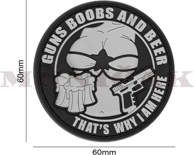 Nášivka z mäkkej gumy (na báze PVC) s 3D efektom. Každá farba je zvlášť tvarovaná (bez farbenia). Na zadnej strane sa nachádza suchý zips pomocou ktorého je možné upevniť nášivku na velcro panel na uniforme, veste, atď. Nášivka je trvanlivá - neláme sa, nebledne a nezoderie sa.