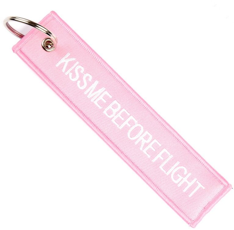 Kľúčenka Kiss me before flight na štýl “Remove before flight” s krúžkom.