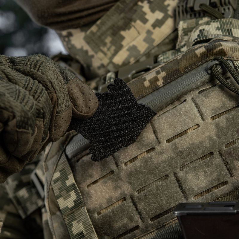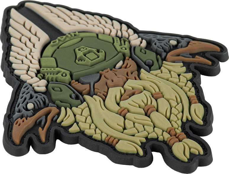 Trojrozmerná nášivka, vyrobená z PVC. Vybavená suchým zipsom, ktorý umožňuje jednoduché pripevnenie k rôznym častiam vybavenia alebo oblečenia.