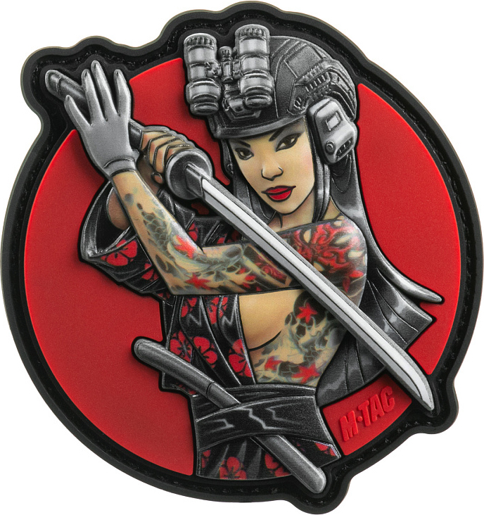 M-TAC Tactical Girl #3 Watterfall je originálna 3D nášivka inšpirovaná japonskou kultúrou, symbolikou a estetikou bojovníkov krajiny vychádzajúceho slnka. Táto dizajnovo výrazná nášivka zobrazuje bojovníčku s katanu, tradičným japonským mečom, v kombinácii s modernými taktickými doplnkami, ako je prilba a aktívne slúchadlá. Jej telo zdobia tetovania Yakuza, ktoré historicky predstavovali príslušnosť ku klanu a odrážali česť, vernosť a vlastnú cestu bojovníka.