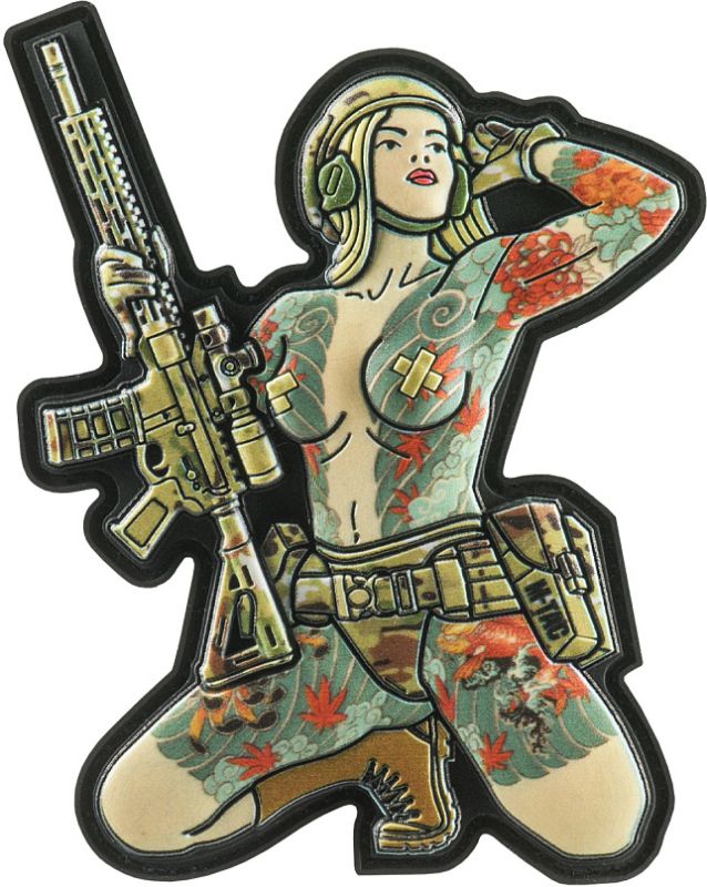 Trojrozmerná nášivka, vyrobená z PVC. Vybavená suchým zipsom, ktorý umožňuje jednoduché pripevnenie k rôznym častiam vybavenia alebo oblečenia.