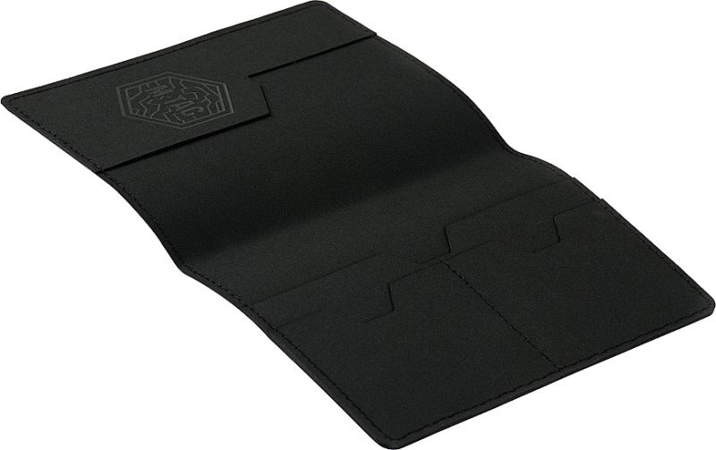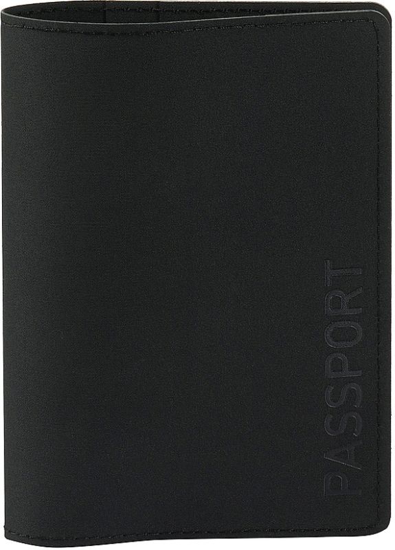 Na prednom kryte je zvislý nápis „Passport“. Vo vnútri sú priehradky na plastové karty a štýlové logo značky.