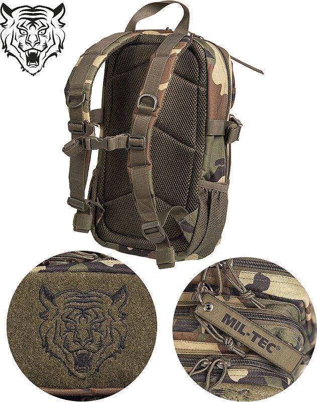 Detská verzia známeho a obľúbeného batohu Assault. Batoh má ergonomické, nastaviteľné a polstrované ramenné popruhy s D krúžkami. Batoh je rozdelený na 2 veľké a 2 menšie oddelenia. Predná časť je kompatibilná s MOLLE systémom.