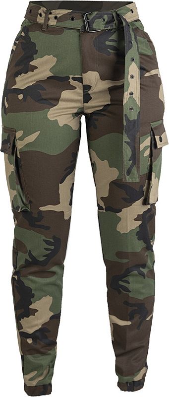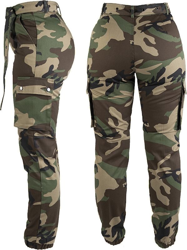 Štýlové dámske armádne nohavice s vysokým pásom. Na uloženie výbavy na nohaviciach nájdete celkom štyri vrecká. Dve klasické na ruky so šikmým vstupom a dve stehenné cargo vrecká kryté chlopňou s cvočkami. Nohavice sú zakončené elastickou lemovkou. K nohaviciam je dodávaný opasok.