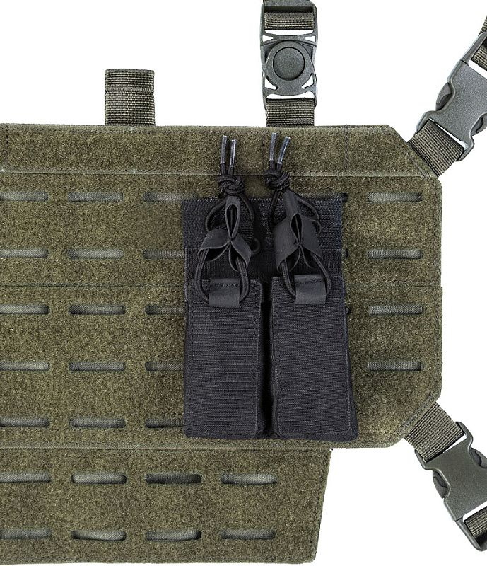 Nízkoprofilová sumka na dva pištoľové zásobníky s možnosťou uchytenia na Vašu výstroj pomocou velcro panelu. Flexibilná veľkosť kvôli bočným stenám vyrobeným z elastického materiálu. Sumka má nastaviteľné elastické šnúry na zaistenie zásobníka.