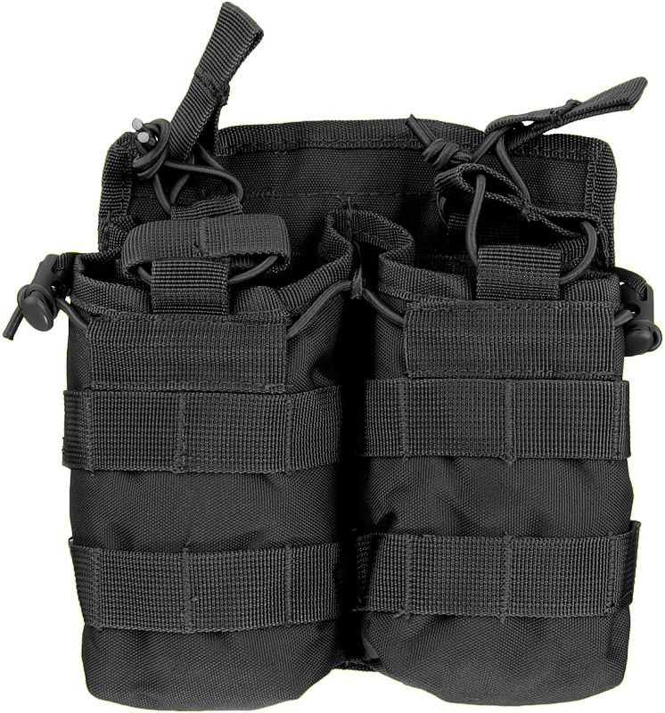 Sumka na 2 zásobníky typu AR-15 alebo AK či G36. Sumka má nastaviteľnú elastickú šnúrku pre pripevnenie vloženého zásobníka. Vzadu sú 2x molle pásky pre pripevnenie sumky na výstroj.