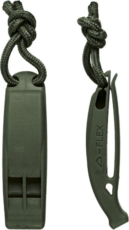 Survival píšťalkou je možné v prípade núdze zavolať pomoc alebo upozorniť na nebezpečenstvo. Dizajn umožňuje pripevnenie na MOLLE panel. Vyrába Duraflex, známy a uznávaný výrobca kompozitných spôn a príslušenstva.