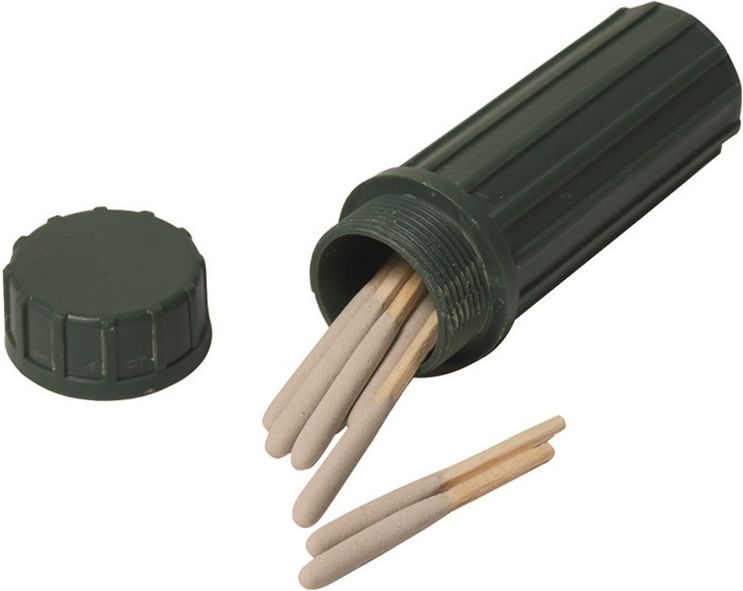Vodotesná plastová krabička na zápalky. Na spodnej strane umiestnené príležitostné núdzové kresadlo. Na kresanie je vhodné použiť napríklad tupú stranu noža. Dodávané bez zápaliek.