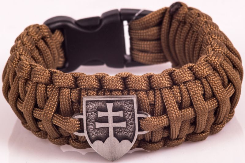 Náramok z paracord šnúry s SK znakom, ktorý slúži najmä pre pocit príslušnosti, ale v núdzi sa dá rozmotať a získa sa tým paracord, použiteľný pre rôzne núdzové situácie.
