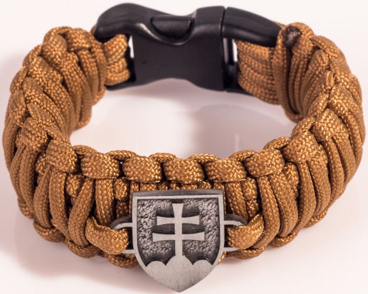 Náramok z paracord šnúry s SK znakom, ktorý slúži najmä pre pocit príslušnosti, ale v núdzi sa dá rozmotať a získa sa tým paracord, použiteľný pre rôzne núdzové situácie.