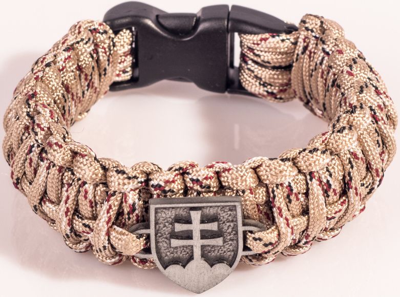 Náramok z paracord šnúry s SK znakom, ktorý slúži najmä pre pocit príslušnosti, ale v núdzi sa dá rozmotať a získa sa tým paracord, použiteľný pre rôzne núdzové situácie.