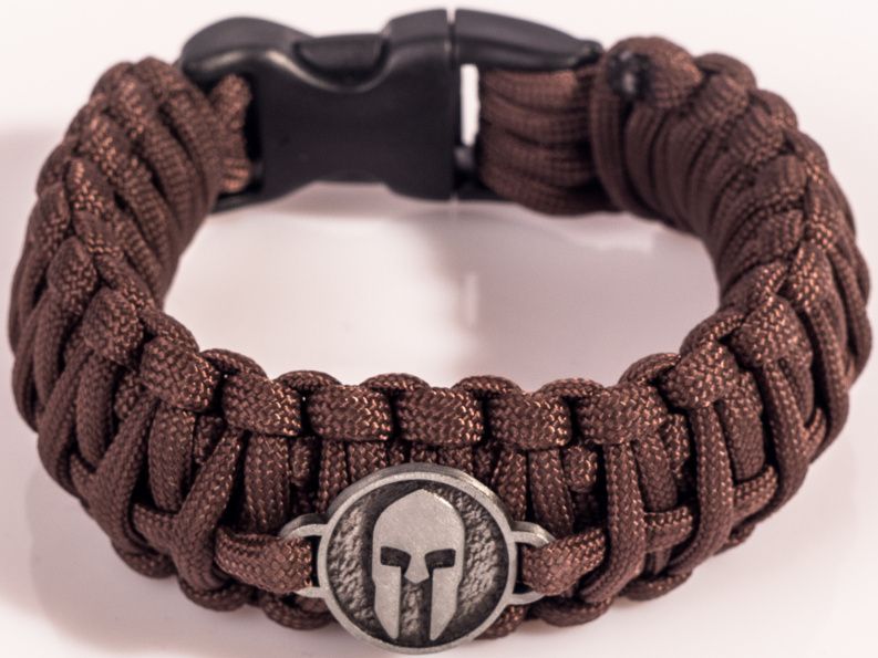 Náramok z Paracord šnúry s Spartan znakom, ktorý v núdzi sa dá rozmotať a získa sa tým lano použiteľné pre rôzne núdzové situácie.