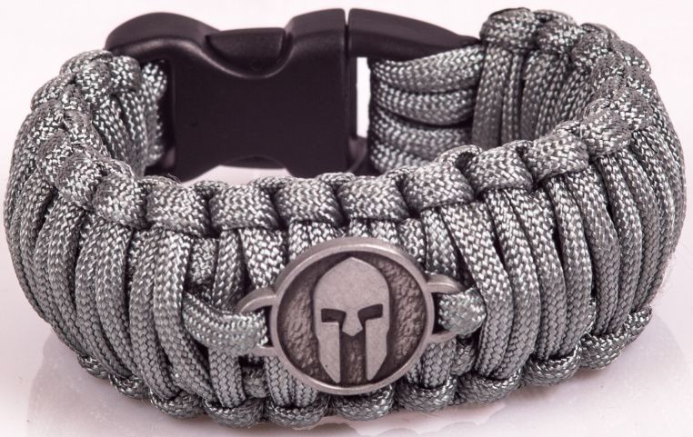 Náramok z Paracord šnúry s Spartan znakom, ktorý v núdzi sa dá rozmotať a získa sa tým lano použiteľné pre rôzne núdzové situácie.