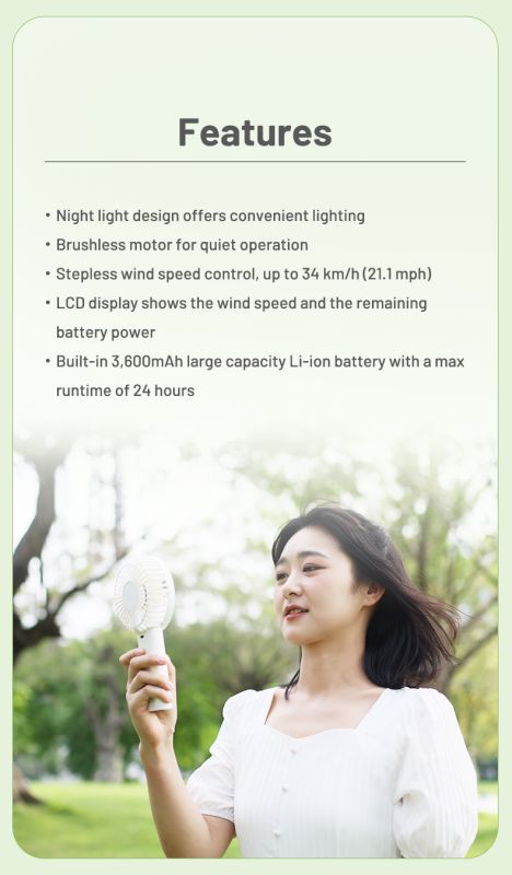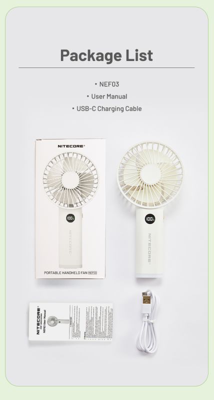 NITECORE NEF03 je multifunkčný prenosný ventilátor, ktorý vám spríjemní horúce dni nech ste kdekoľvek. V elegantnom bielom prevedení, s kompaktným dizajnom a dlhou výdržou batérie, sa stane vaším spoľahlivým spoločníkom na cesty aj domáce použitie. Bezkomutátorový motor, tichá prevádzka, plynulá regulácia vetra a praktické LED nočné svetlo vám zaručia komfort aj v tých najnáročnejších podmienkach.