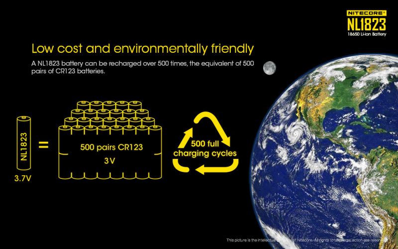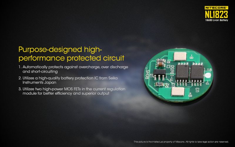 NITECORE Li-Ion akumulátor NL1823 je nabíjateľná 18650 batéria s kapacitou 2300 mAh a napätím 3,7 V, určená pre vysokovýkonné zariadenia, ako sú svietidlá a iné energeticky náročné prístroje. Tento akumulátor je vybavený integrovanou ochranou proti prebitiu, nadmernému vybíjaniu a skratu, čo zabezpečuje dlhšiu životnosť a bezpečné používanie. Ponúka viac než 500 nabíjacích cyklov, čím znižuje potrebu častých výmen a zároveň šetrí náklady.