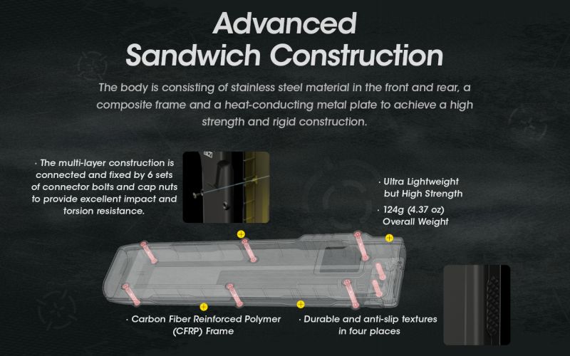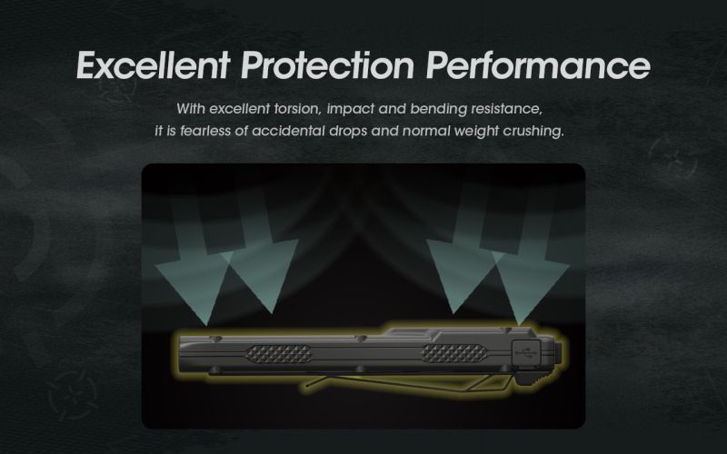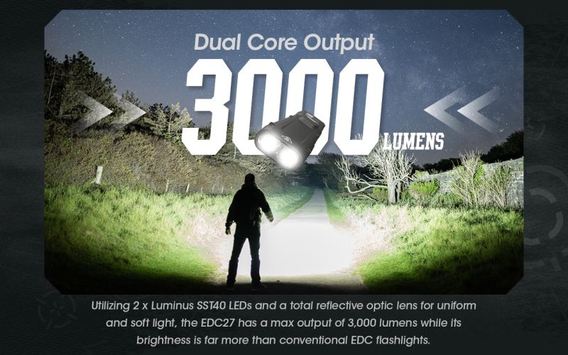 Ultratenké taktické svietidlo s digitálnym displejom používa vysoko kvalitné LED diódy 2x Luminus SST40 LED. Maximálny výkon až 3000 lúmenov. Vysoko efektívna elektronika. Maximálna prevádzková doba až do 37 hodín. Inteligentný nabíjací obvod s detekciou napätia, nabíja bezpečne a rýchlo. Integrovaná zásuvka USB-C je odolná voči vode, prachu a nárazu.