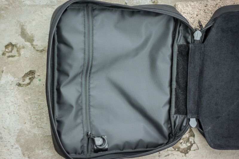 Taška obsahuje Molle systém z gumového materiálu Hypalon, ktorý umožňuje modulárne rozšírenie úložného priestoru pripojením ďalších modulov. Vo vnútri sa nachádza polstrovaná hlavná priehradka s odnímateľnou deliacou stenou a suchým zipsom, ktorá poskytuje flexibilné usporiadanie a ochranu pre uložené predmety. Taška má tiež zosilnené „grab-and-go“ úchyty a robustné D-krúžky pre obojstrannú prevádzku.