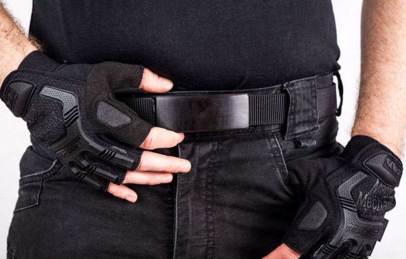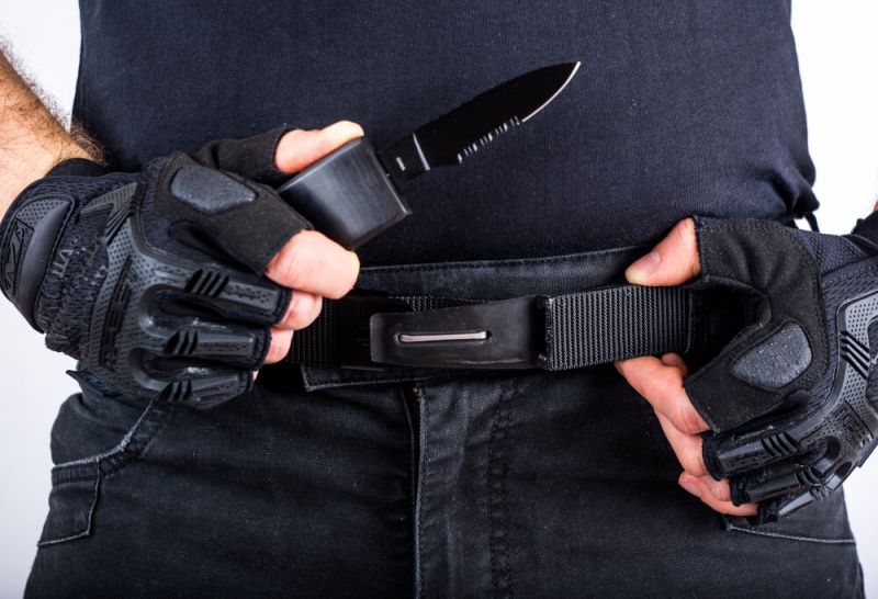 nylonový opasok s 8.3 cm dlhým skrytým nožom z nerezovej ocele. Produkt, ktorý navrhol dizajnér mečov a nožov Daniel Valois. Upraviteľná veľkosť, pracka je z chrómu. Jednoduchá a rýchla manipulácia.