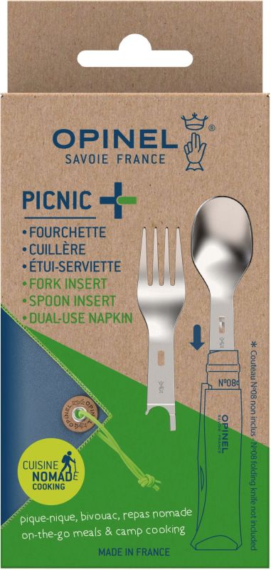 Praktická sada, ktorú využije každý vlastník vreckového noža Opinel rady N°8, či už hiker, cestovateľ a milovník dlhých prechádzok prírodou, rovnako tak aj mestský piknikár. V malom balíčku si vezmete kamkoľvek inteligentne vymyslené a odolné príslušenstvo pre pohodlné stravovanie na cestách. Spoločne s Opinel zatváracím nožom si tak vytvoríte udržateľný nerezový, kompletný príbor, ktorý kompletne nahradí ten jednorazový plastový či drevený.