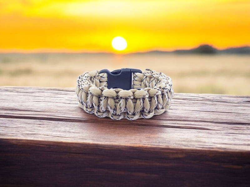 Tento náramok je viac než len módnym doplnkom – je to praktický a univerzálny nástroj, ktorý môže byť váš spoľahlivý spoločník v každej situácii. Vyrobený z vysoko kvalitnej paracord šnúry, pôvodne vyvinutej pre padákové laná, tento náramok je extrémne pevný, odolný a pripravený na každodenné výzvy.