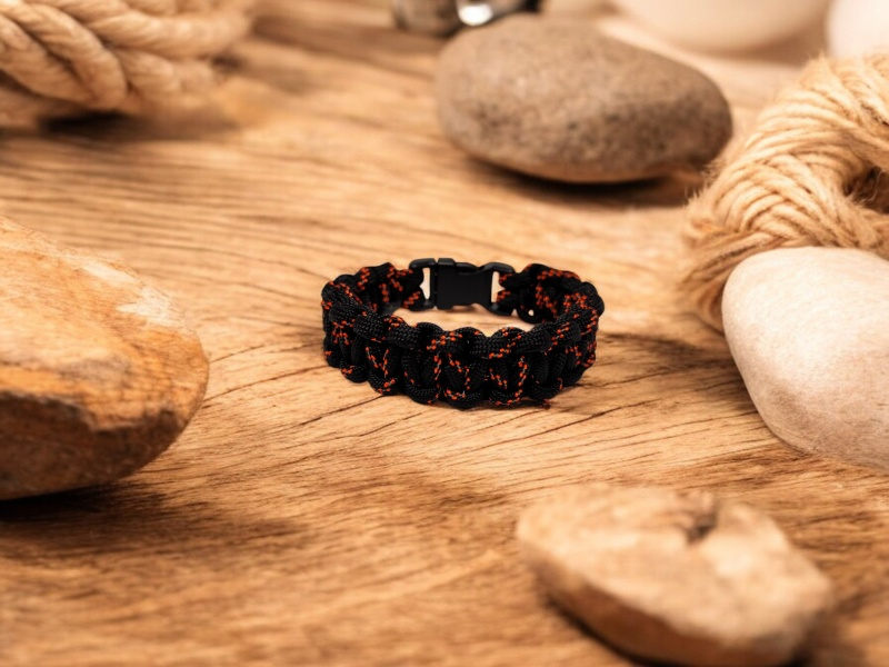 Prežitie v prírode: Rozpletením náramku získate niekoľko metrov pevného lana, ktoré môžete využiť na stavbu prístrešku, výrobu pasce, alebo ako náhradný materiál pre opravu výstroje.