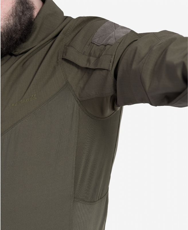Pentagon Ranger Shirt je bojová košeľa resp. tričko (combat shirt) vyrobené z kvalitných materiálov 65% polyesteru a 35% bavlny s RipStop úpravou (215 g/m2). Trup tvorí strečovitá elastická tkanina. Ramená a rukávy sú z pevného a odolného materiálu, oblasť lakťov má zdvojenú látku, zvyšná časť je veľmi priedušná. Stredový diel lepšie saje pot a v neposlednom rade je oveľa príjemnejší na nosenie, čo umožňuje plnú ohybnosť a sústredenie na akciu. Tričko sa používa ako časť odevu pod taktickú vestu alebo na samostatné nosenie. Oblieka cez hlavu a na zapínanie slúži YKK® zips. Na ramenách sú velcro panely (11,5 x 6,5 cm) pre rôzne patche a vrecká so zapínaním na YKK® zips. V podpazuší je extra priedušnejší materiál, ktorý je sieťkovaný pre lepšie odvetrávanie a konce rukávov sa dajú prispôsobiť pomocou suchých zipsov na požadovaný obvod.