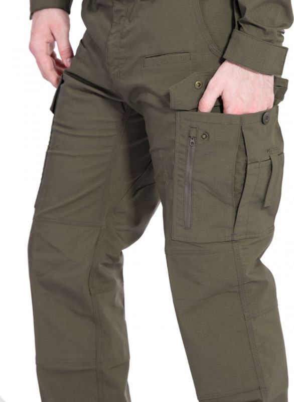 Nohavice sú ošetrené povrchovou vrstvou Teflonu®, sú čiastočne nepremokavé a lepšie odolávajú znečisteniu. Na kolenách sú vložené vrecká na chrániče s vnútorným prístupom. Nohavice majú celkom 16 vreciek - z toho 2 bočné vrecká s otvoreným šikmý vstupom pre rýchle použitie uložených predmetov alebo na ruky, 2 veľké úložné vrecká na stehnách kryté príklopkou so zapínaním na patentku a s pridaným vonkajším vreckom na dokumenty so zapínaním na zips a 2 zadné vrecká s príklopkou. Majú externé puzdro na pero a na nožnice. Pútka na opasok sú špeciálne navrhnuté na opasok RIGGERS Belt až do šírky 1,75 " tj. cca 4,5 cm.