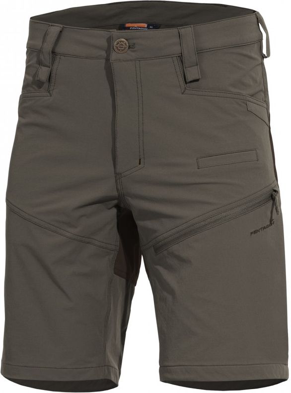 Zapínanie je riešené pomocou klasickej kombinácie YKK zipsu a masívneho vonkajšieho kovového gombíka opatreného logom značky PENTAGON. Pri poškodení hlavného gombíka môžete v prípade potreby využiť vnútorný istiaci plastový gombík. Kraťasy disponujú celkom siedmimi pútkami na prevlečenie opaskov do šírky 50 mm. Na uloženie výbavy skvele poslúži celkom sedem vreciek. Dve klasické na ruky majú spevnené okraje tak, aby nedochádzalo pri zavesení noža k ich poškodeniu. Pod pravým vreckom na ruky sa nachádza menšie ploché vrecko ideálne na uloženie pištoľového zásobníku či mobilného telefónu. Najviac priestoru na uloženie výbavy potom ponúka dvojica stehenných cargo vreciek uzatváraných dlhým zipsom. Poslednú dvojicu vreciek nájdete v oblasti sedu.
