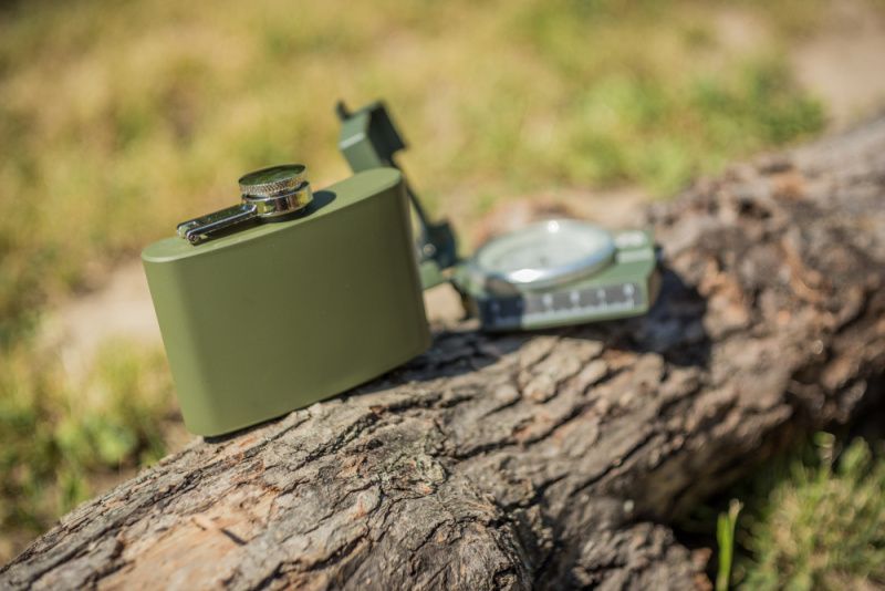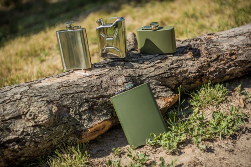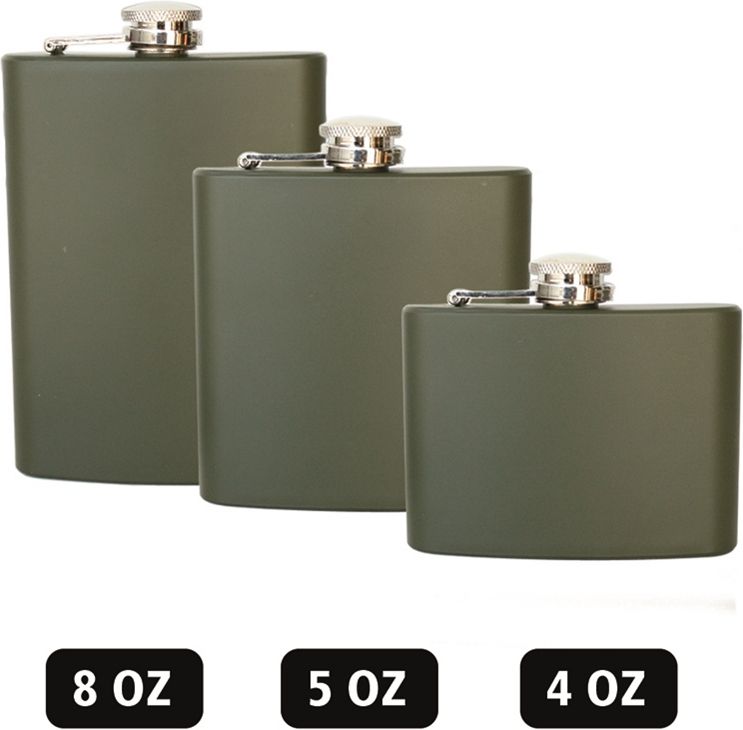 Elegantná fľaša vyrobená nemeckou spoločnosťou Mil-Tec z nehrdzavejúcej ocele pokrytej ochrannou farbou v matnej olivovo zelenej farbe. Vďaka klasickému tvaru a neobvyklej farbe je ideálna na lov v lese alebo na hru pri ohni. Osvedčí sa ako darček pre milovníkov alkoholu alebo ako náhradná nádoba na vodu. Aby sa uzáver nestratil, bol pripevnený oceľovým závesom. Samotný uzáver a náustok sú vyrobené z mosadze.