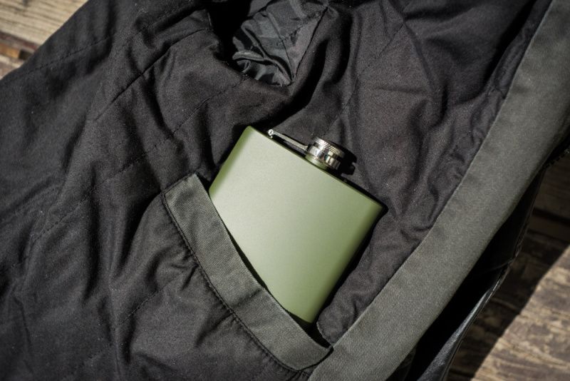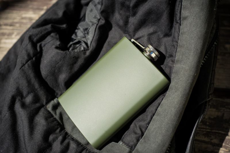 Elegantná fľaša vyrobená nemeckou spoločnosťou Mil-Tec z nehrdzavejúcej ocele pokrytej ochrannou farbou v matnej olivovo zelenej farbe. Vďaka klasickému tvaru a neobvyklej farbe je ideálna na lov v lese alebo na hru pri ohni. Osvedčí sa ako darček pre milovníkov alkoholu alebo ako náhradná nádoba na vodu. Aby sa uzáver nestratil, bol pripevnený oceľovým závesom. Samotný uzáver a náustok sú vyrobené z mosadze.