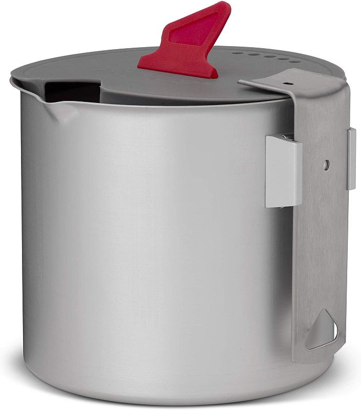Pokrievka je z ľahkého plastu so silikónovým držadlom a zároveň slúži ako cedník. Samotný hrniec má odnímateľnú kovovú rúčku, ktorú je možné na hrniec pripevniť v dvoch rôznych polohách. Pri zložení drží hrniec s pokrievkou pohromade a zároveň zaberá minimum miesta. Hrniec Trek Pot je na vnútornej strane vybavený ryskami s označením objemu. Dodáva sa s praktickým a pevným sieťovaným vreckom na prepravu.