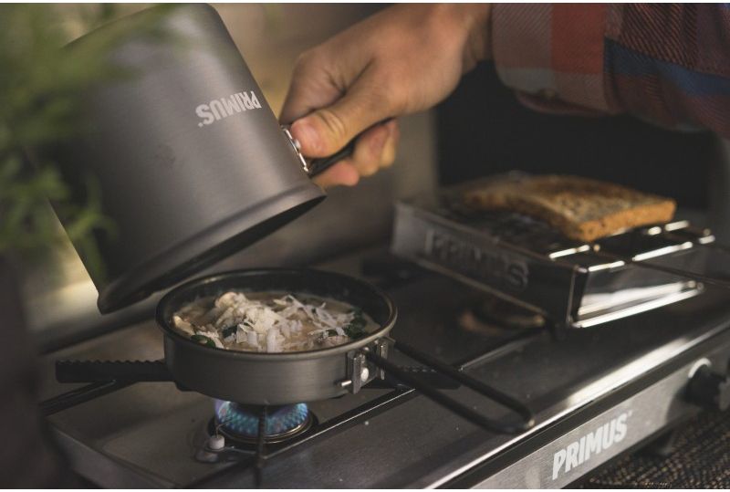 Sada Primus LiTech Trek Kettle je ideálna pre outdoorové aktivity, ako je kempovanie, turistika alebo výlety do prírody. Táto praktická sada pozostáva z hrnca s objemom 1 liter a panvice, ktorá zároveň slúži ako pokrievka. Vyrobená je z anodizovaného hliníka, čo zabezpečuje vysokú odolnosť a nízku hmotnosť.