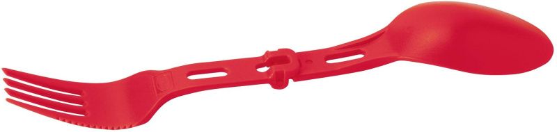Ľahký skladací príbor z veľmi odolného PC plastu (polykarbonát). Dostupný vo viacerých farbách. Obsahuje lyžičku, vidličku a rezaciu časť (nožík) na vidličke.