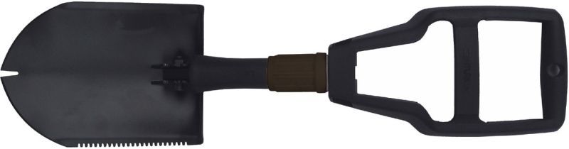 Trojdielna skladacia lopatka (rýľ) s plastovou rukoväťou. Súčasťou balenia textilné puzdro.
