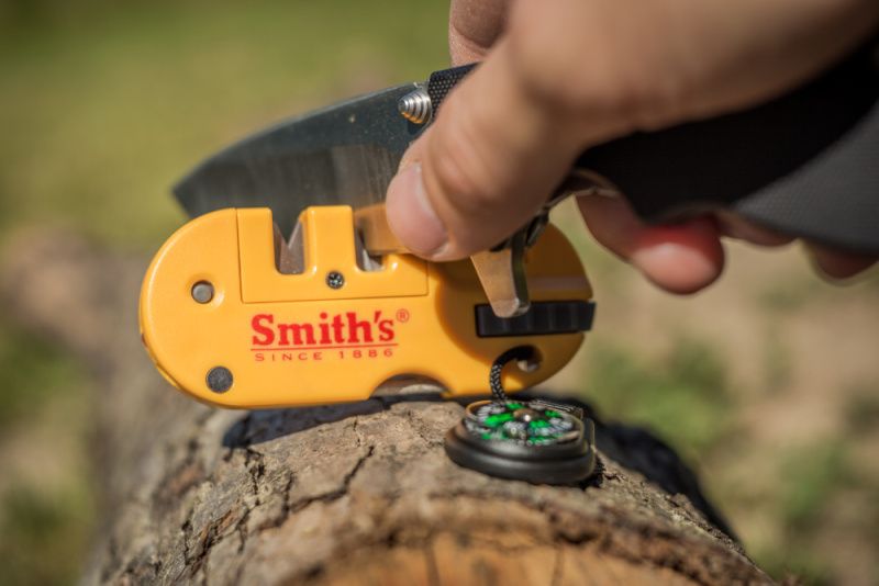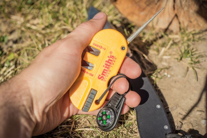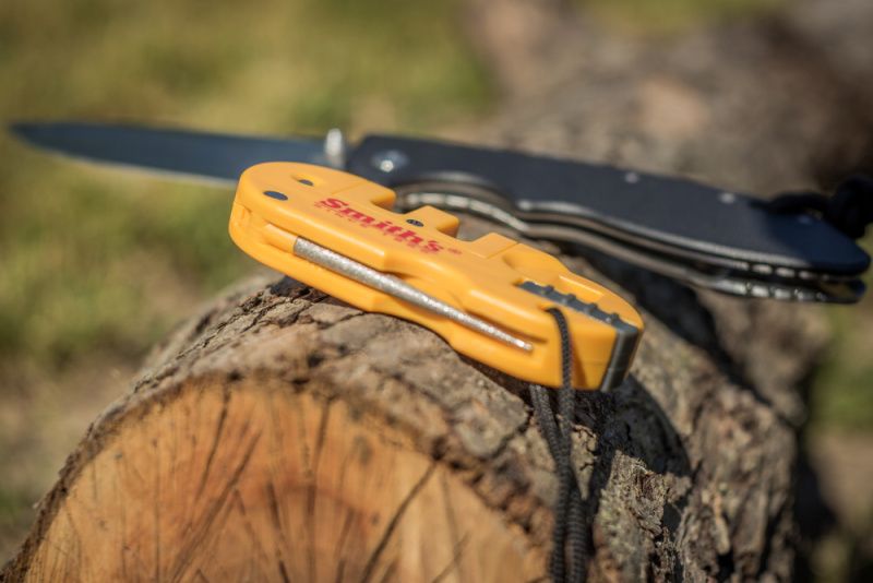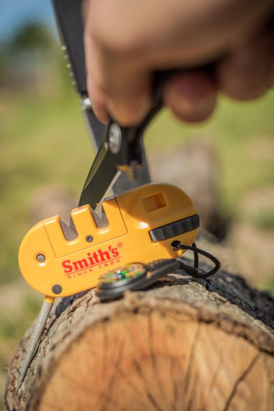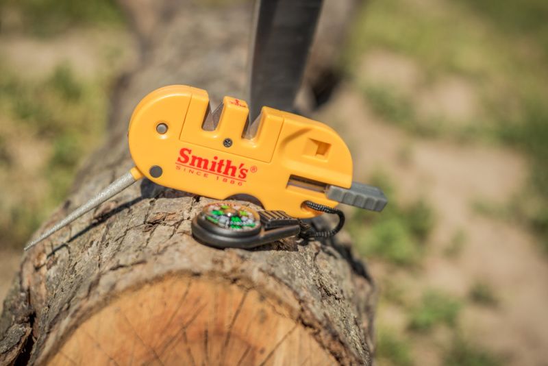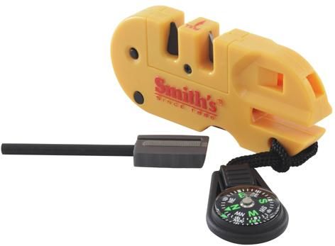 Multifunkčný Survival nástroj Smith’s obsahuje viacero funkcií ktoré využijete a oceníte pri vašich najmä dlhotrvajúcich dobrodružstvách v prírode. Poskytuje rýchle a dlhotrvajúce brúsenie nožov s prednastavnými uhlami pre rovomerné brúsenie (2 drážky pre brúsenie nožov). Na spodnej časti nájdete kužeľovitú diamantovú tyčku pre brúsenie zúbkov na nožoch. Na vrchu / vpredu sa nachádza praktické LED svietidlo. Ďalej tu nájdeme aj signálnu píšťalku (do 120 dB), kompas a kresadlo. To všetko v ľahkej a odolnej, kompaktnej konštrukcii.
