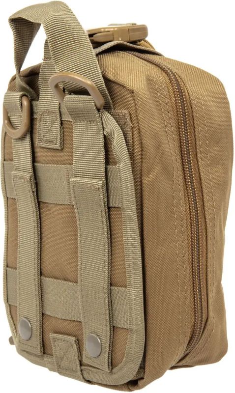 Táto MOLLE breakaway lekárnička od značky Specna Arms je určená pre rýchly a bezpečný prístup k zdravotníckemu materiálu v teréne. Vďaka odnímateľnému systému upevnenia s Velcro panelom a Fastex prackou ju možno okamžite odopnúť z výstroja a ihneď použiť. Je vyrobená z odolného nylonu, ktorý poskytuje dlhú životnosť a odolnosť voči opotrebeniu aj v náročných podmienkach. Organizovaný vnútorný priestor obsahuje sieťované vrecko na zips, elastické úchyty a ďalšie Velcro vrecko, čo umožňuje prehľadné uloženie zdravotníckych pomôcok. Na prednej strane sa nachádza patch panel s dodanou identifikačnou nášivkou a na spodnej strane odtokový otvor na odvod vody alebo nečistôt.