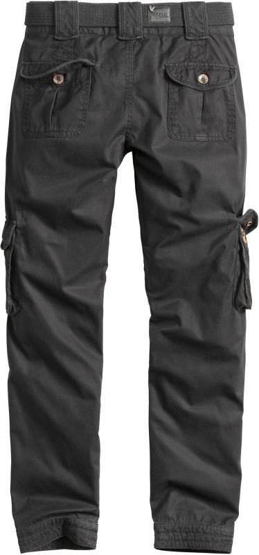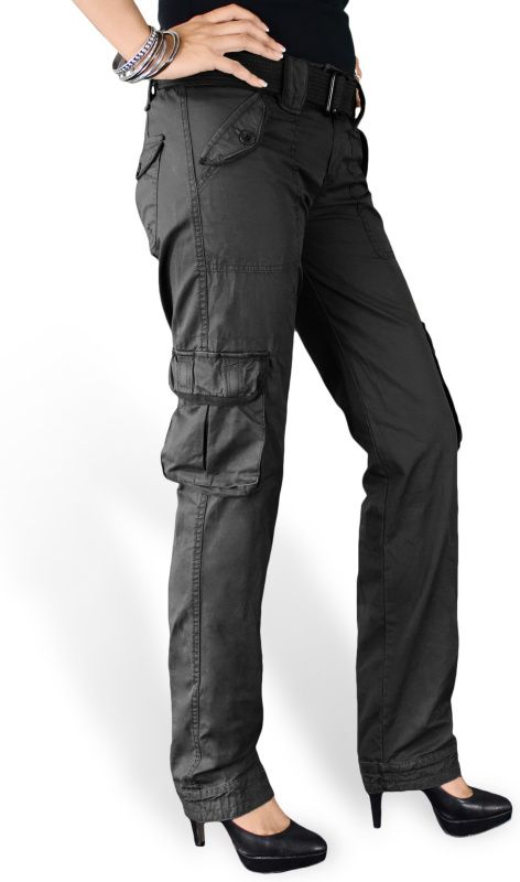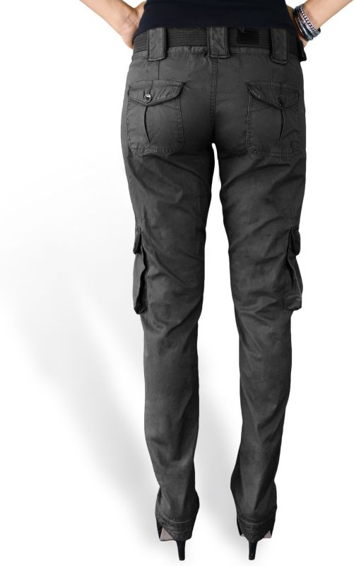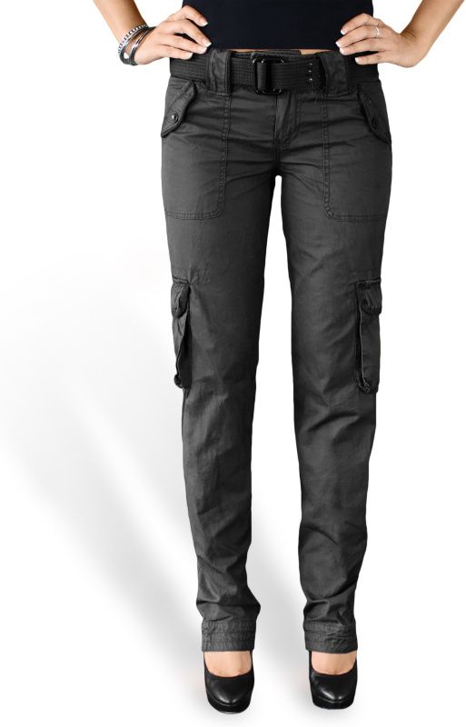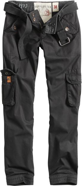 Aj ženy si zaslúžia top kvalitu a preto SURPLUS vyvinul po úspechu pánskych nohavíc aj dámsku verziu Premium Slimmy. Nohavice perfektne sadnú, sú pohodlné a praktické. Sú vyrobené zo superjemného bavlneného materiálu a prichádzajú v opranom a ošúchanom "vintage" štýle. Ponúkajú veľmi kvalitné spracovanie s dvojitým prešívaním. K nohaviciam je dodávaný textilný, masívne prešívaný opasok s kovovou sponou. Nohavice sa zapínajú na gombíky a vrecká majú cvoky, ktoré sú zabezpečené proti vytrhnutiu koženým podkladom. Nohavice ponúkajú veľké množstvo vreciek: vpredu so zvýrazneným okrajom s trojitým švom a zapínaním na gombíky, dvojicu vreciek na bokoch so zapínaním na cvoky a vzadu dve vrecká na gombíky kryté límcom s ozdobným lemom.