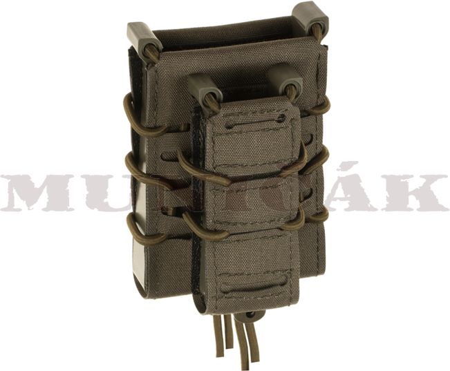 Dvojitá sumka od firmy Templars Gear je určená na nosenie takmer všetkých zásobníkov na pušku a jedného pištoľového zásobníka. Jednoduchá dvojkomorová konštrukcia je vyrobená z vysoko odolného materiálu Cordura 500 s IRR a kydexovým rámom. Sofistikovaný dizajn a použité vysokokvalitné materiály zaručujú mechanickú pevnosť a komfort pri používaní. Tento pouch poskytuje používateľovi rýchly prístup k svojim zásobníkom. Veľmi dôležitým prvkom pouchu je regulovaný systém, ktorý zabraňuje vypadnutiu zásobníkov. Tento systém je založený na dvoch nastaviteľných šnúrach a nekĺzavých podložkách vo vnútri. Kompatibilné s MOLLE / PLAS, ktoré umožňujú pripevnenie ďalšieho vybavenia. Systém pripevnenia je založený na dvoch popruhoch, ktoré vám sumku umožnia pripevniť na vestu, alebo na páse MOLLE.