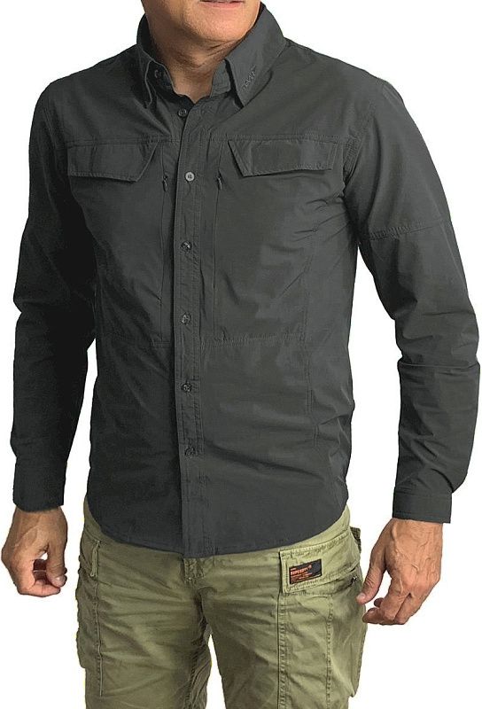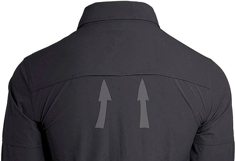 Košeľa je ľahká a veľmi pohodlná vďaka použitiu 4-cestnej strečovej tkaniny. Materiál má tiež rýchloschnúce vlastnosti.