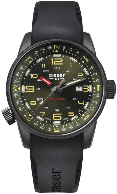 Traser P68 Pathfinder Automatic Green je navrhnutý špeciálne pre cestovateľov a objaviteľov. Či už ste v džungli veľkomesta, uprostred oceánu alebo vo vyprahnutej púšti, luneta kompasu P68 Pathfinder vám vždy ukáže nielen čas, ale aj smer. Puzdro z ušľachtilej ocele s priemerom 46 mm má matnú čiernu PVD povrchovú úpravu. Ciferník je krytý odolným zafírovým sklíčkom s antireflexnou vrstvou, ktorá zaručuje dokonalú čitateľnosť aj za zhoršených svetelných podmienok.