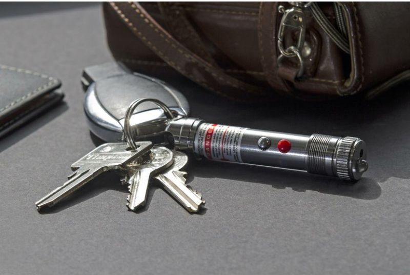 Výkonná LED baterka a červený laserový lúč True Utility LaserLite je ideálny na nosenie na prívesku na kľúčoch.