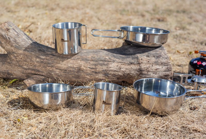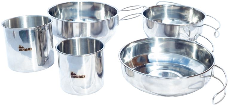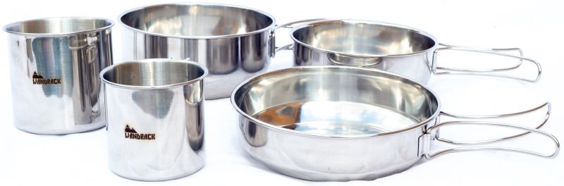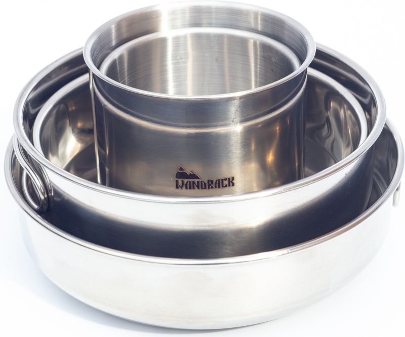 Praktický set riadu z nerezovej ocele značky Wandrack. Ideálny na cesty, kempovanie, rybačku či polovačku. Sada obsahuje tri panvičky a dva hrnčeky, takže je set ideálny aj pre viacero osôb. Vďaka skladnému dizajnu si riad jednoducho zbalíte so sebou aj do batohu.