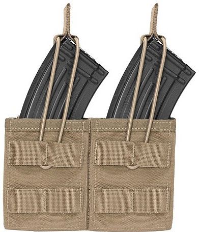 Sumka na zásobníky dvojitá, čo znamená, že zaberá miesto ako dve vrecká tzn. štyri stĺpce PALS väzby. Zásobník je v sumke istený pomocou gumičky, takže nevypadne a zároveň poskytuje veľmi rýchly prístup k munícii. Pásky pre uchytenie a PALS väzba na zadnej strane sumky sú samozrejmosťou. Pútka väzby na prednej strane umožňujú navešanie sumiek na seba, prípadne kombinovať s rôznymi puzdrami.